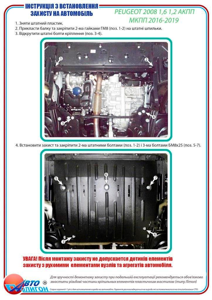 PEUGEOT 2008 1,6 1,2 АКПП/МКПП 2016-2019 Захист моторного відсіку та КПП