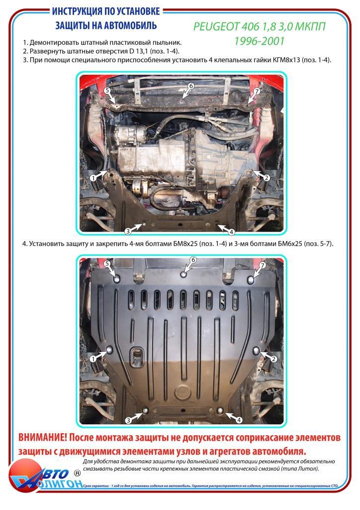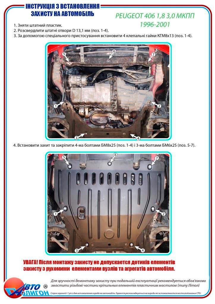 PEUGEOT 406 1,8 3,0 2,0 МКПП 1996-2001 Захист моторного відсіку та КПП