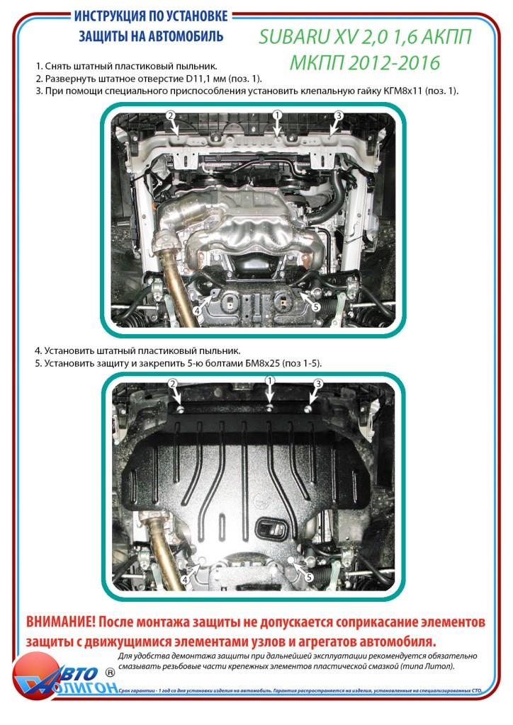 SUBARU XV 2,0 1,6 АКПП/МКПП 2012-2016 Захист моторного відсіку