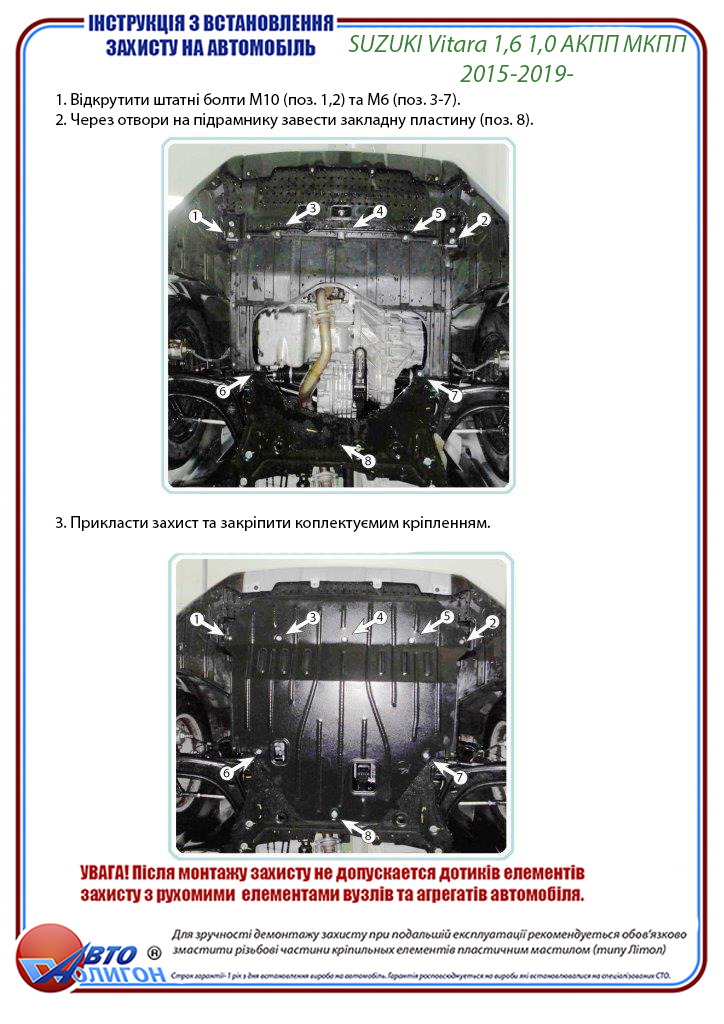SUZUKI Vitara 1,6 1,0 АКПП/МКПП 2015-2019- Захист моторного відсіку та КПП