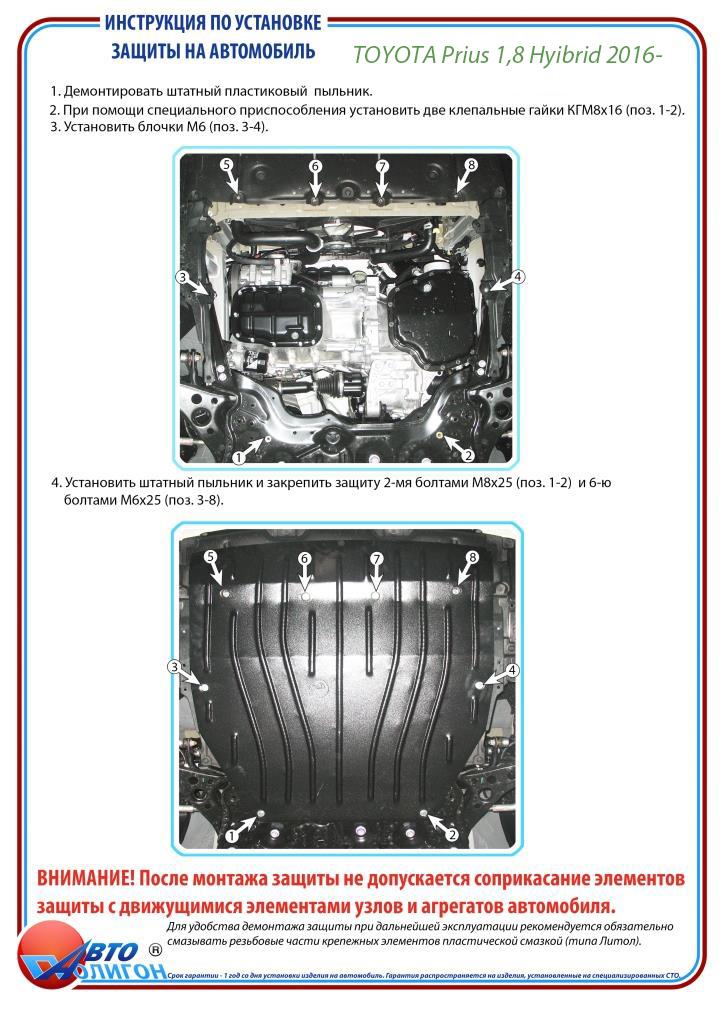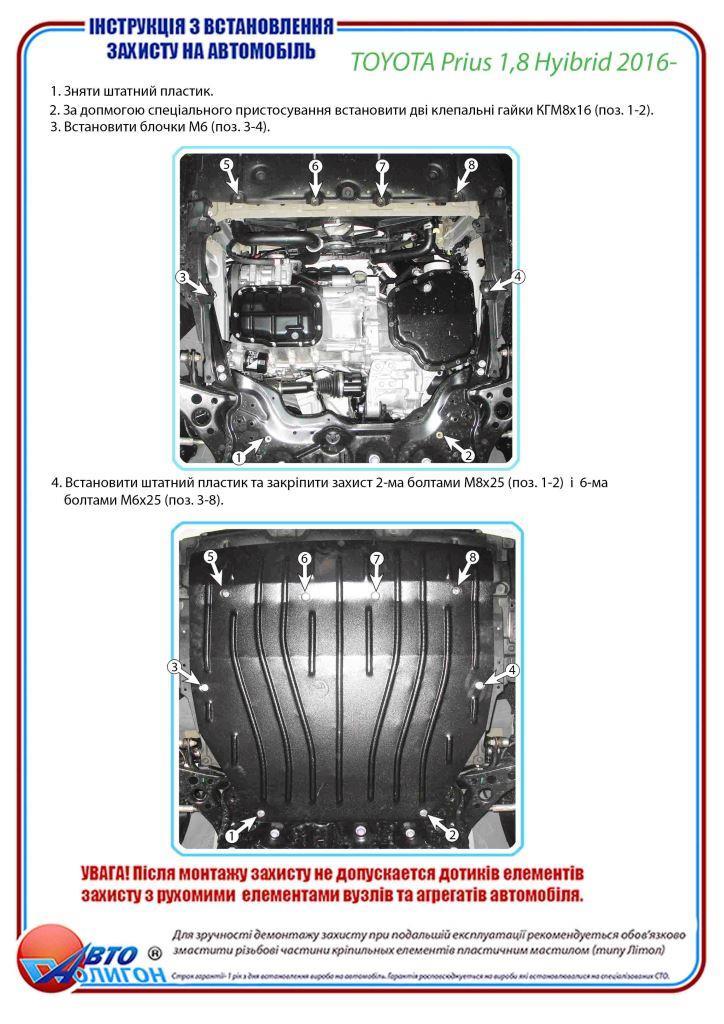 TOYOTA Prius 1,8 Hyibrid 2016- Захист моторного відсіку та КПП