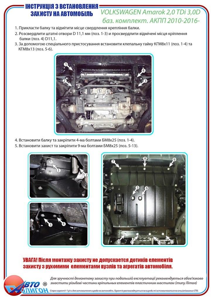 VOLKSWAGEN Amarok 2,0 TDi 3,0D базова комплектація АКПП 2010-2016- Захист моторного відсіку