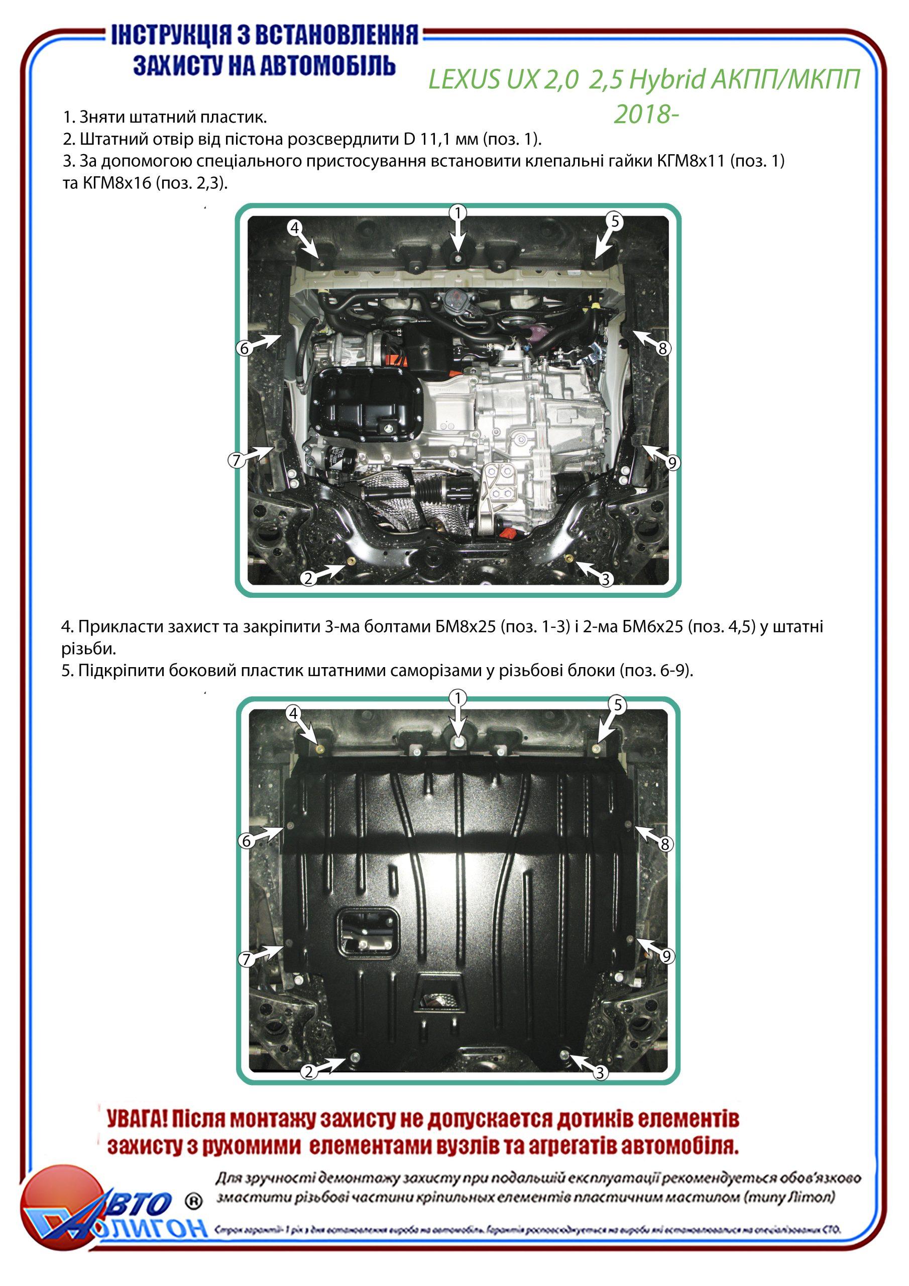 LEXUS UX 2,0 2,5 Hybrid АКПП/МКПП 2018- Защита моторного отсека и КПП
