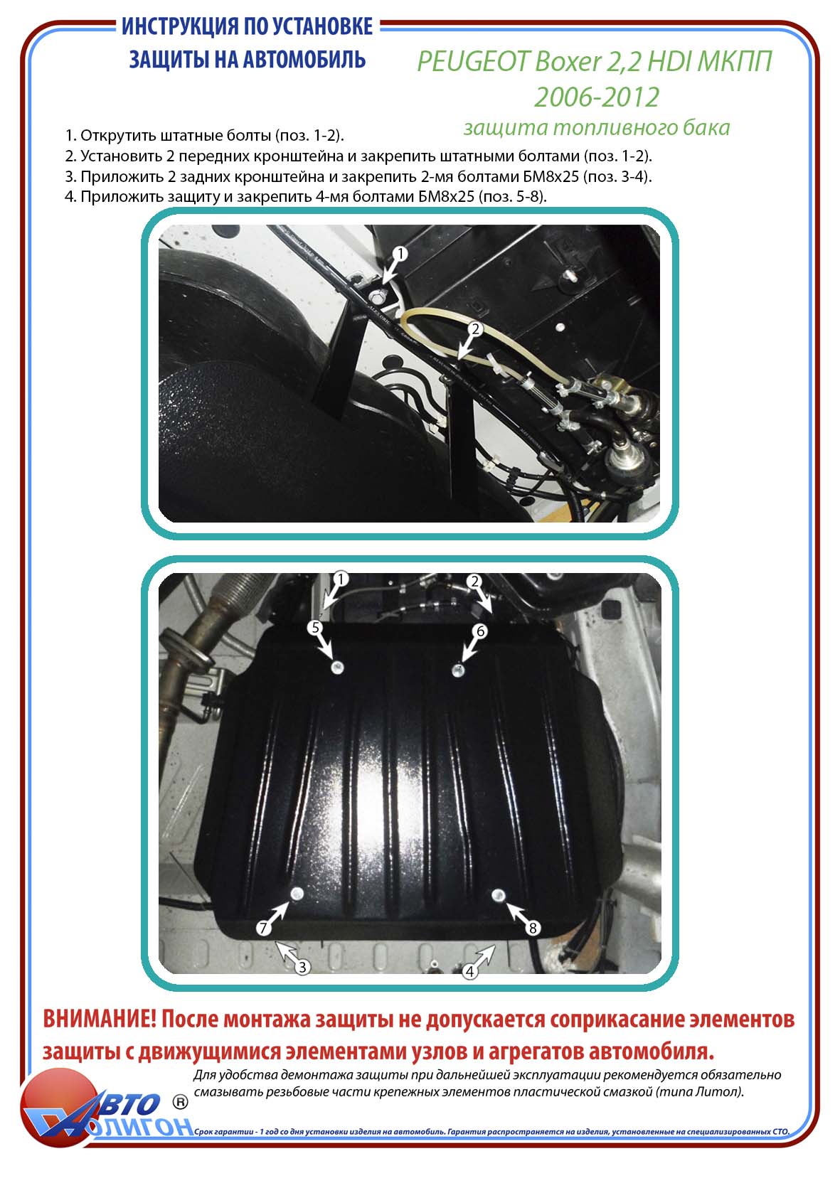 PEUGEOT Boxer 2,2 HDI МКПП 2006-2012 Защита топливного бака