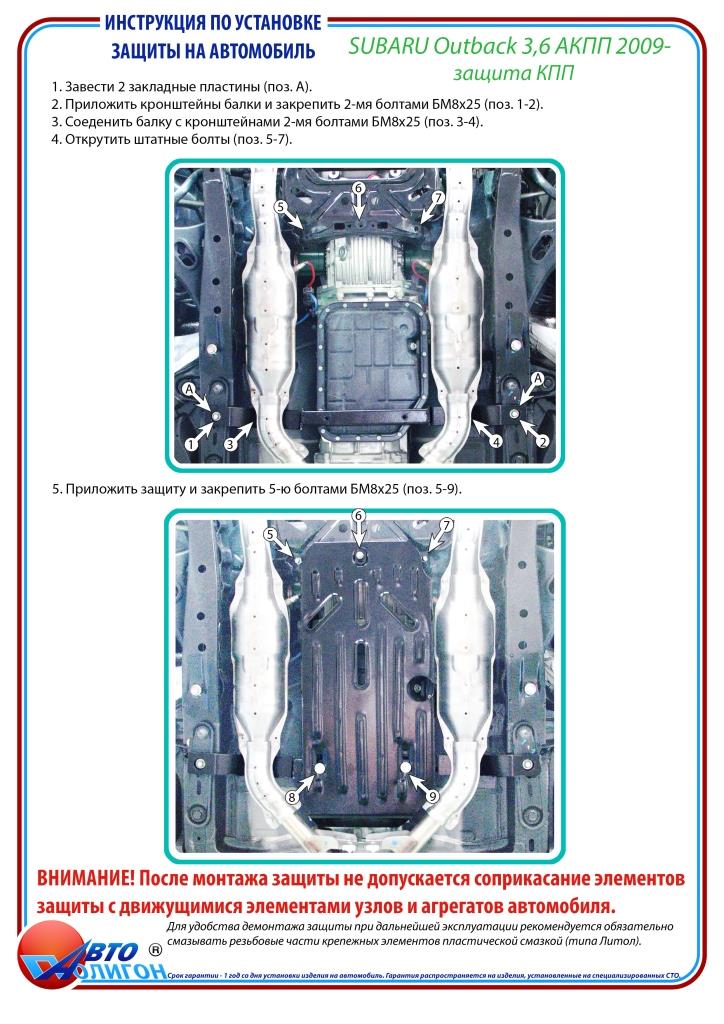 SUBARU Outback 3,6 АКПП 2009- Защита КПП