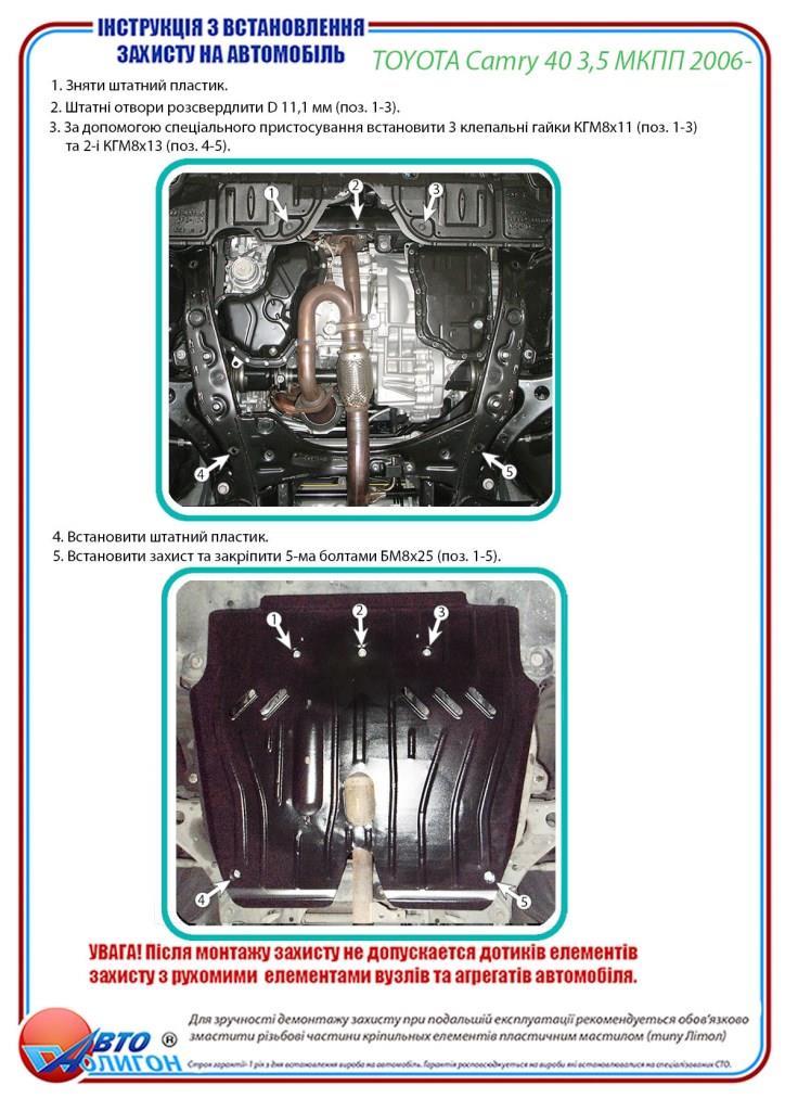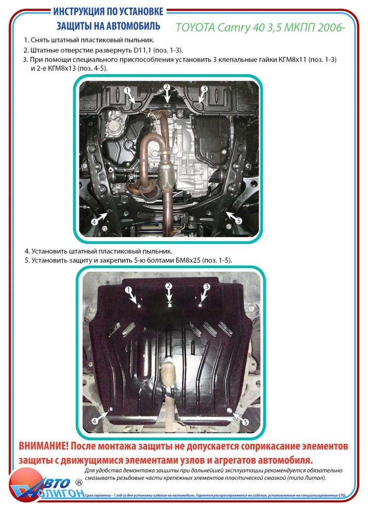 TOYOTA Camry 40 3,5 МКПП 2006- Защита моторного отсека и КПП