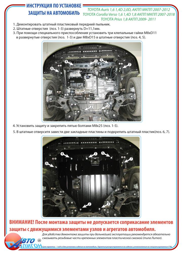 TOYOTA Corolla Verso 1,6 1,4D 1,8 АКПП/МКПП 2007-2018 Защита моторного отсека и КПП